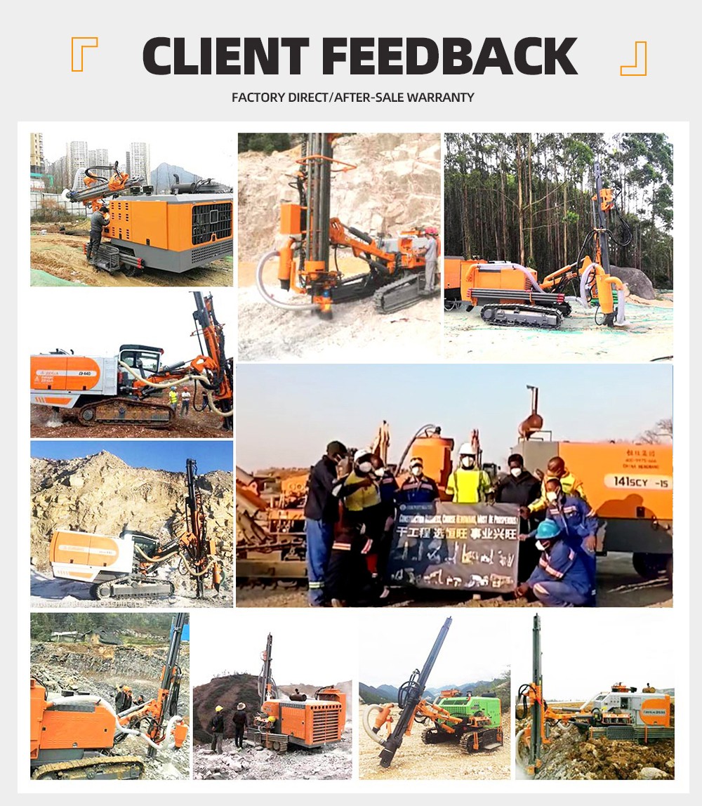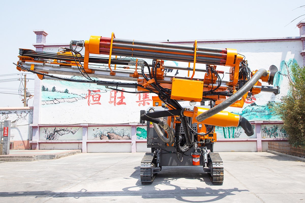 The DTH drilling rig is specifically designed for drilling blast holes in medium to hard rock, with a diameter range of 90-130 mm and a maximum depth of 24 m.