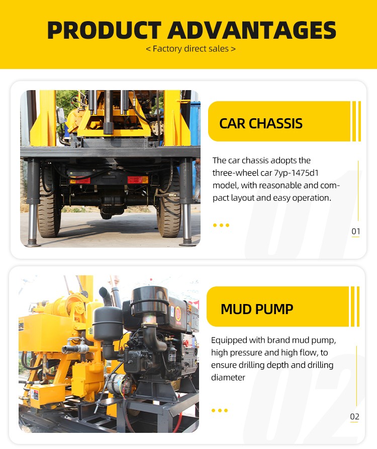 2. Hengwang water borehole drilling is specially designed for the perfect match between the engine and the hydraulic system, which improves performance and reduces fuel consumption by 7%;