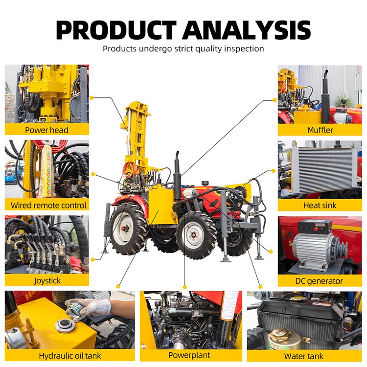 Heng wang water well drilling rig is an integrated drilling equipment by combining tractor and pneumatic water well drilling rig, which is easy to walk and combined the air compressor.
